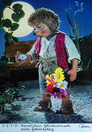 (It's a German colloquialism for "Happy Birthday", probably translating to something like "Best Wishes on Your Birthday" or "Many Happy Returns" or something like that). So not only has this poorly dressed woodland creature been stood up, he's been stood up on his birthday, which the caption writer feels compelled to underscore with a sarcastic birthday wish. I don't want to hazard a guess as to what this says about the German psyche, other than to point out the obvious: they are a mighty strange people.