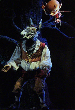 This disturbing image is from the Salzburg Marionette Theatre's rendition of Shakespeare's "A Midsummer Night's Dream". The sinister donkey-like creature is apparently Bottom the Weaver with the head of an ass. The reason he has a donkey's head is because Puck, the evil-looking thing in the tree, has decided to play a trick on him. Tori has seen this show, and she confirms that it's as creepy as it looks. It's a little worrisome that the Germans can take one of Shakespeare's most light-hearted comedies (it's named after a pleasant dream, for god's sake) and make it look like something out of my nightmares; I think they've still got some major issues to work out before we let them have weapons in large quantities again.